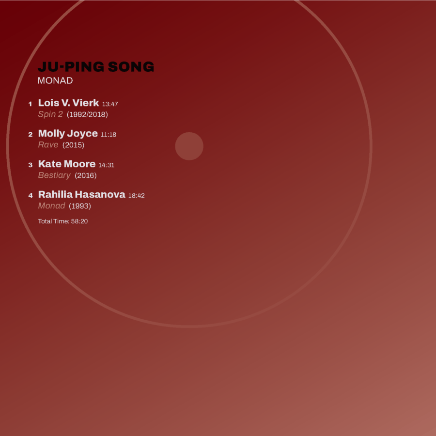 The CD opens with Lois V Vierk’s Spin 2 (1992/2018), “a masterpiece of canny construction and unfettered emotion that deserves a central place in the international canon of works for two pianos” (Distler). By multitracking both piano parts, Song creates an “ideal interpretation, where Vierk’s carefully scaled dynamic gradations, interlocking clusters, and gorgeous pedal effects emerge with unprecedented clarity” (Distler). Spin 2 was commissioned and premiered by Ursula Oppens and Frederic Rzewski, and this album features the premiere recording of Vierk’s 2018 arrangement.